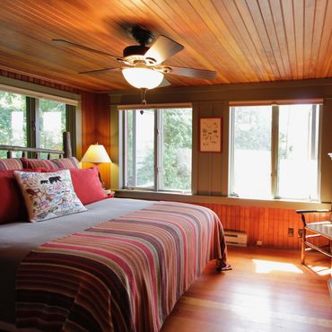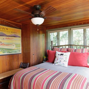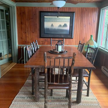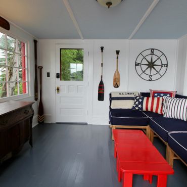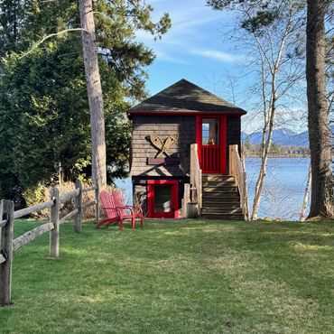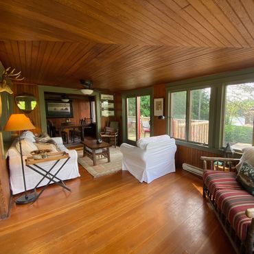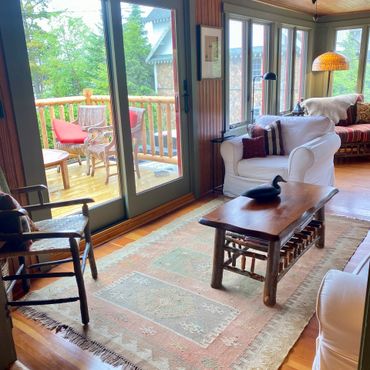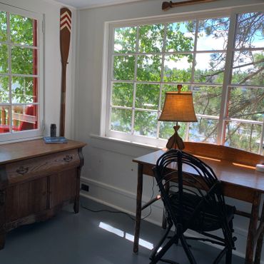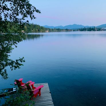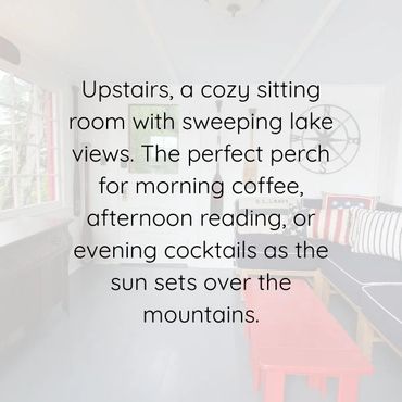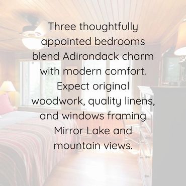 Enjoy sweeping views of Mirror Lake and the Southern Adirondacks from the lakeside rooms—partially filtered by a neighboring home, but still beautiful and ever-changing with the light. Note: The boathouse sits directly on the water with dock access and unobstructed views, while the cottage offers water views from the lakeside rooms.
