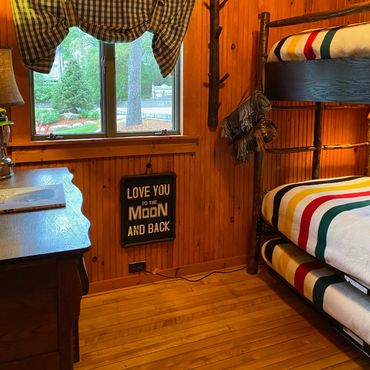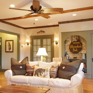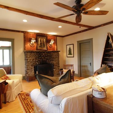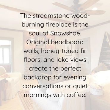Inside, original beadboard, fir floors, and a streamstone wood-burning fireplace create a warm, welcoming vibe. Adirondack-style furnishings offer cozy character alongside modern updates.